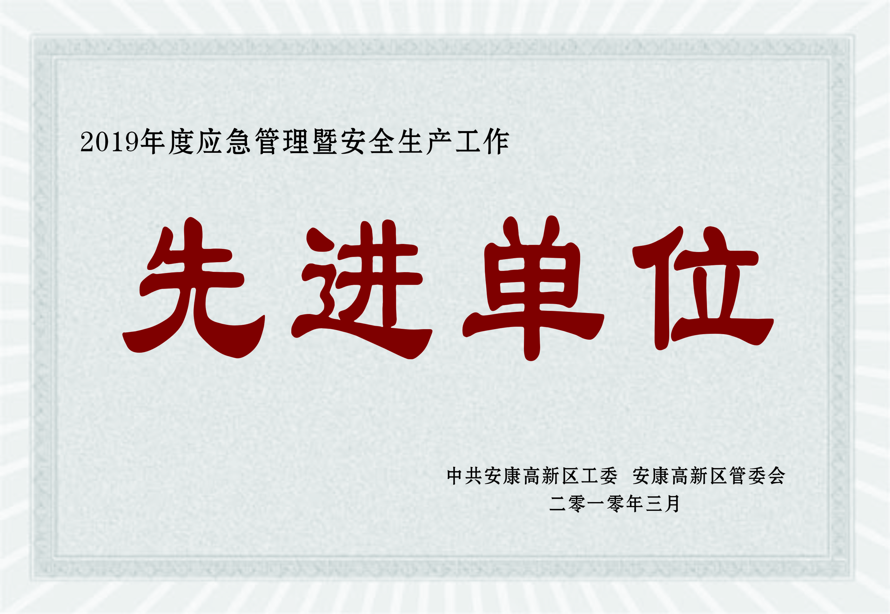 2019年安全生產(chǎn)工作先進單位